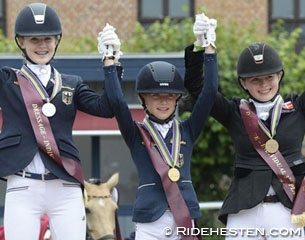 The individual test podium at the 2016 European Pony Championships: Inga Katharina Schuster, Lucie-Anouk Baumgürtel, Louise Christensen :: Photo © Ridehesten.com