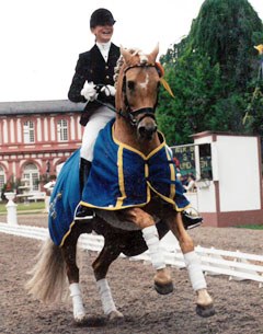 Jana and Golden Dancer win the pony class at the 1996 CDI Wiesbaden
