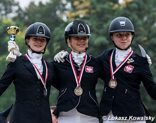 The 2017 Polish Pony Championship podium with Ewa Golubinska, Zofia Baran, and Julia Bilicka :: Photo © Lukasz Kowalski