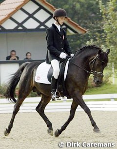 Living in Cologne, Germany, Katharina Winkelhues rode the FEI Dressage Pony test with Dressman the first year. The 14-year old licensed breeding stallion Dressman, who is currently German's most favored sire for dressage ponies, is however an experienced schoolmaster. His list of achievements is probably a true apex in pony history: four times German Young Horse Champion, five team gold medals at the European Pony Championships (with riders Astrid Buer, Desiree Schurf, Kira Kroncke and Katharina Winkelhues), four times winner of the Preis der Besten and multiple CDI Champion.