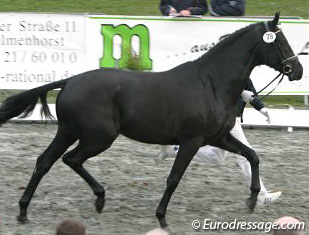 Taking the morning and afternoon session into consideration, day one favorite has to be the number 23, a Paul Schockemohle owned Donnerhall out of Kilkenny (by Kennedy x Karon). The black stallion has a very nice conformation, a solid walk and an superb trot showing great flexion of the hocks and swing in the body. The audience was really impressed by this dark bay as they clapped for the first time for a stallion's performance.