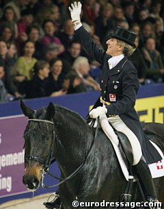 The Dutch pair, runners up at the 2004 FEI World Cup Final, scored 81.6 per cent to leave the rest of the field in their wake, although it was a hot contest in which the top seven horses scored over 76 per cent. With nearly 7000 spectators who gave Edward Gal a standing ovation, the atmosphere was as hot as the contest.