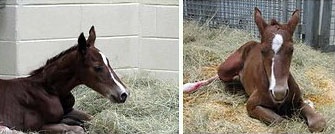 E.T.Cryozootech-Stallion was born on 2nd June 2006. Like E.T., he has a stripe and two socks on his hind legs but the fine and side ways stripe on his nose is very different from E.T.’s blaze. On the other hand, the DNA test carried out by the official laboratory LABOGENA has shown the same identical genetic content.