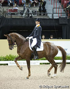 Werth choose to ride Satchmo in Las Vegas as she had already won the 2007 World Cup there with Warum Nicht.“This time I liked to give Satchmo the chance to compete in Las Vegas. I love the audience here," she said. " I felt a bit disturbed by the photographers. Therefore I rode more careful in a pirouette as I noticed Satchmo was distracted by the camera noise.”