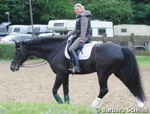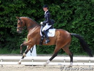 The 5-year old Dressage Horse division was split into two groups and judged by Reinhard Richenhagen, Ulrike Böckler and Ulrike Nivelle. Group 1 was won by Eva Möller aboard Silvia Rizzo's Westfalian gelding Blickpunkt (by Belissimo M x Weltmeyer). She scored an impressive total score of 8.6 and left all competition far behind her. Jana Freund and the black mare FS La Noir (by Lord Loxley x Lucito) placed second with 8.3, followed by Marion Engelen with Show Boy in third place.