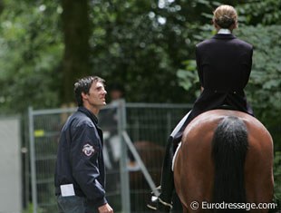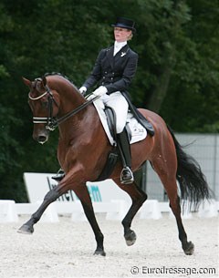 Imke Schellekens-Bartels finished third with Sunrise on a score of 73.106%. Though the mare performed a clean ride, she seemed less relaxed than she was, for instance, in Hagen. The extended trot lacked overtrack and the rein back was tense. The trot half passes were great, though, as well as the piaffe and passage. There was also some tension in the canter tour, especially in the two tempi's. The one tempi's lacked ground cover and the pirouette right could have been more correct.