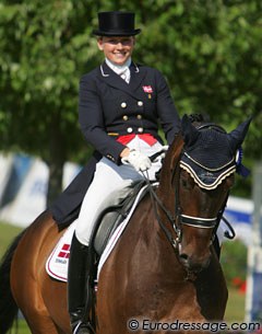 Jill de Ridder and Charmeur. Lovely pair but Charmeur is still very inconsistent in the contact with the bit. In trot he pushes himself high, in canter he gets deep. The trot was fluent though and the right walk pirouette tiny