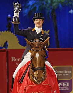 On yet another great day for Dutch dressage, nine-time World Cup Dressage champion Anky Van Grunsven produced a lovely Freestyle test from Painted Black to secure runner-up spot ahead of Edward Gal and Next One in third. Germany's Isabell Werth, winner at the first two legs of the series in Odense, Denmark and Lyon, France did not compete this afternoon but still heads up the series leaderboard going into the next round at Olympia in London in December. However the Dutch contingent look set to pose a serious threat to the leading pack in the coming weeks.