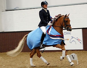 The 4-year old Top Red is bred by Sarah Steggall in partnership with a friend, and is now owned by Steggall and Elaine Coleridge Smith. Top Red carries successful performance lines on both side of his pedigree, his sire and damsire both being German "Bundeschampions" and his sire also competed as an international dressage pony. Top Red was backed and produced by Alice Perry of Windmill Farm; however, as Alice had a second four year old entered, her trainer, Linsay Coleridge Smith, competed Top Red on the day. Alice did present Top Red at the previous day's SPSS stallion grading where he was also Champion. German grading judge, Hans-Heinrich Bruening, said he considered Top Red to be a "top pony stallion" and also a "prospective international dressage pony" and this proved prophetic when Top Red became the 2012 Young Dressage Pony Champion. Top Red not only gained the highest score recorded in the three years that this championship has been running but is also the first Champion to be British-bred. Showing how British Sports Pony breeding is improving, the next three ponies in the overall results were also British born and bred.
