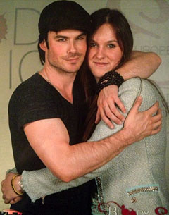 2012 European Junior Riders' Champion Dana van Lierop apparently has other passions than horses. The fun loving Dutch rider attended the Bloody Night Con(vention), which focuses on the American hit series The Vampire Diaries. Fans can meet the actors upclose and personal and take photos with them. Van Lierop was beaming on the photo with lead actor and hunk Ian Somerhalder, aka Damon Salvatore. Go Team Damon!