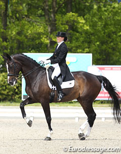 Twenty-two year old old Dutch rider Dinja van Liere and her dark bay mare Hexagon's Roumada made an impression on their international debut, taking out both the Intermediate II and Short Grand Prix in the Under 25 classes at the 2013 CDI Roosendaal on 25 - 26 May 2013. The combination posted winning scores of 69.184% and 68.442% on the board to earn two trophies.