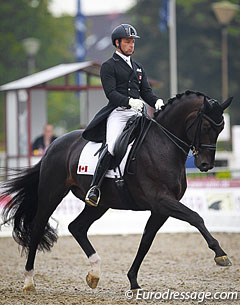 Canadian David Marcus and Deborah Kinzinger's Danish warmblood Chrevi's Capital (by Lavallo x Weinberg) placed second in a strong international field of 31 riders in total. Marcus and Capital rode a strong test with improved piaffe passage transitions. One pirouette was unbalanced and one tempi change was a bit mediocre. The judges awarded them a 72,300%, their personal best score so far.