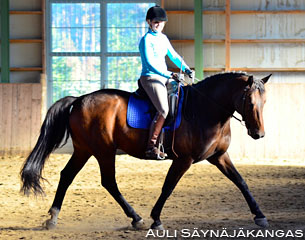 Rauthioaho stressed that even though her Hanoverian is a talented horse "I could never afford an expensive or ready trained horses. That's why Carde's system is very important to me; it really enables every horse to become collected and do more demanding movements and at the same time retains the horse's joy in work. For me the decisive factor within this system is to get the right feeling for activity, balance and submission because this can be applied on every movement. It is a kind of tool to train my horses to become more supple and also stronger mentally.”