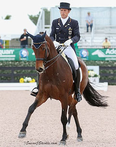 Christoph Koschel received the highest overall score of the class, with a 71.421% aboard Kelly Layne's Von Primaire, which ultimately moved him to the second round to compete against Adrienne Lyle, who received a 66.579% aboard Melody Jackson's Fortune and Fame, pushing her into the final round of competition. Lyle won the final round of the Derby, scoring a 66.816% aboard Leah Wilson's Zango with Koschel finishing just behind on a 64.053%.