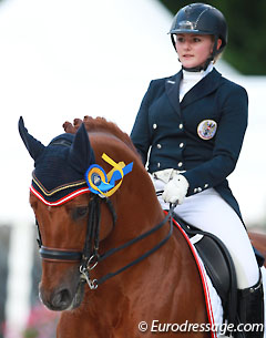 Valentina Strobl and the 12-year old mare Cypria F (by Contender) won the team test on 67.568%, lifting their score to 68.421% in the Individual. The youngster told Eurodressage she was not expecting to do so well.
