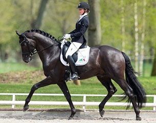 Nine horse-and-rider combinations contested the 5-year old division at L-level and Norwegian Isabel Freese aced the class aboard Paul Schockemohle and Lone Boegh Henriksen's Hanoverian stallion Fursten-Look (by Furstenball x Londonderry). The black stallion scored 9.5 for trot, 8.5 for walk, 9.0 for canter, 7.5 for submission and 9.0 for general impression to average a winning total of 8.7. Manuel Bammel and the Hanoverian bred Brunello HR (by Benetton Dream x Stedinger) were the runners-up with 8.3.. The dark bay gelding scored 8.5 for walk and trot, 8 for canter and submission and 8.5 for general impression.
