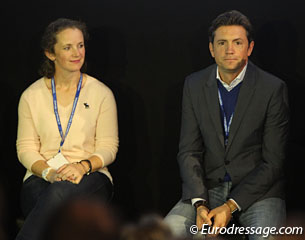 The discussion became really interesting when Hunt touched upon the fact why the scoring of the piaffe ranges so much between judges. "The piaffe is a big discussion, especially horses traveling forward. They are only allowed half a foot per step maximum," said Hunt. The British trainer and IDTC chair then and there made a very bold yet absolutely correct public statement: "my opinion is they shouldn't accept it - the traveling - as then it becomes half steps. Judges have to be clearer. We are the Olympics. There should be no traveling."