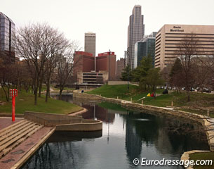 Friday was a lull day for dressage so I decided to explore downtown Omaha which can easily be done on foot. I was very surprized about the cleanliness of the city, and the beautiful infrastructure with huge corporate buildings (Union Pacific headquarters are here), parks, ponds, trees with christmas lights still in it and then my favourite, those old warehouse buildings with advertisement painted on and the black iron fire escapes on the outside. Such buildings expose that there is a tradition and history in this town that has not yet been wiped out by commerce. Old Market is definitely the place to be with the cutest stores, art galleries and restaurants. You immediately noticed that horse people were shopping and you spotted them everywhere. A good sign that the World Cup Finals bring business to town! I bumped into Danish/American Grand Prix rider Bent Jensen in the street and had a quick chat.