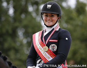 In the junior division the 17-year old Victoria Wurzinger and Sissy Max-Theurer's Rhinelander gelding Bvlgari (by Belissimo M) cruised to the national title with two winning rounds of 72.523% and 71.930%. Wurzinger's greatest challenger and last year's champion, Nicola Ahorner, was absent from the event as her horse is not fit. Lilli Ochsenhofer scored her second silver medal of the weekend after pony silver on Nashira. Aboard her 11-year old Hanoverian mare Sanibel (by Samarant) she produced two consistent rounds that earned her 70.315% and 69.342%. Helen Grabenwöger and the 13-year old Oldenburg bred Dancing Diamond (by Diamond Hit- landed the bronze medal after posting 70.495% and 68.728% on the board.