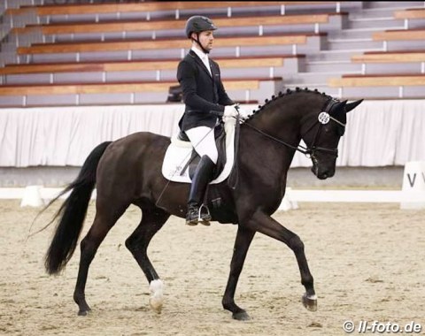 Axel and Sandra Schürne's Vainqueur (by Vivaldi x Rubioso N) failed the test with a total of 7.27, as well as Fursten Time (by Furstenball) with 7.15. The albino Qaside MD (by Quasi Gold) and Trakehner Intarsio (by Ovaro) barely scraped by with 7.57 and 7.53 points.