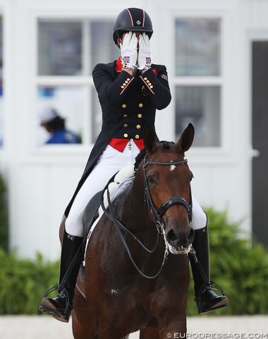 Britain’s Charlotte Dujardin is eager to be back on the top podium and there is no holding her back. She rode Emma Blundell’s 9-year old Hanoverian mare Mount St. John Freestyle (by Fidermark x Donnerhall) with nothing to lose and asked for the maximum the youngest horse of the dressage competition has to give at this moment.