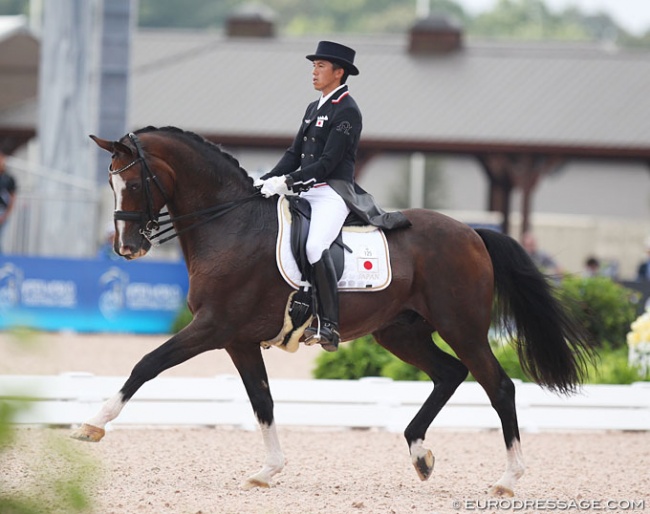 At the end December 2015 Clearwater sold to Tsunehiro Shimoda in Japan as a ride for his son Akihiro Shimoda, but it was Shingo Hayashi who appeared in the show ring with the gelding. The pair kicked off the 2016 show season early but after the CDI Hagen in April 2016, the horse disappeared again, to return in December 2017 at the CDI Gotemba in Japan. This year the sympathetic bay was fresh and fit and did the CDi's in Hagne, Compiegne, Verden and Crozet. The final international competition for the 20-year old was the 2018 World Equestrian Games in Tryon.