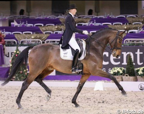 The winner of the warm up round, Kira Wulferding and Wolfgang Strizke's Westfalian mare Brianna (by Bvlgari x Rohdiamant) could not repeat their feat in the Finals and dropped to sixth place with 73.634%. Wulferding was fourth aboard Ulla Katzorke-Hellweg's Rhinelander mare Bohemian Rhapsody (by Belissimo M x De Niro) on 73.780%%.