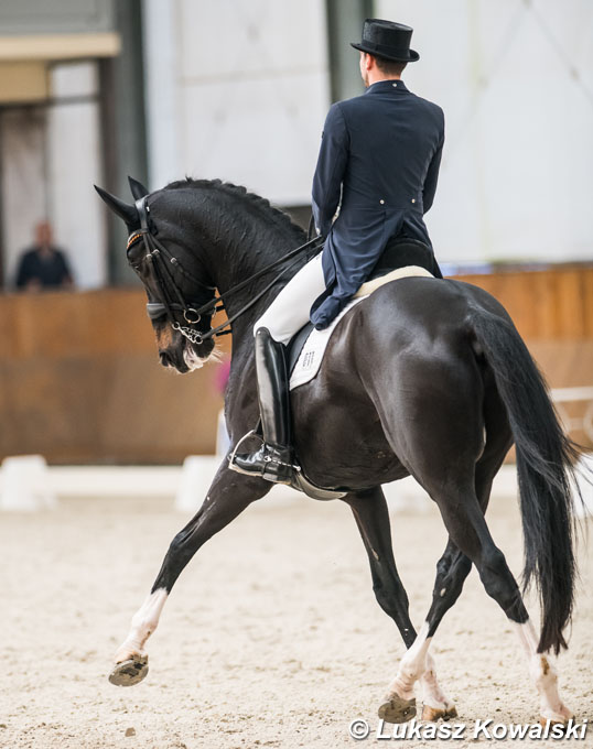 Meulendijks twice edged out Austrian Christian Schumach on his new Grand Prix ride, Donna Karacho, Ruth Kerky's 12-year old Westfalian mare by Don Schufro x Fidermark. Schumach missed out on Austrian team selection with Sinclair Jason for the European Championships this year. However, since September he has been campaigning this second iron in the fire, making his international debut at the 2019 CDI Fot in September. The pair went leaps forward on the score board in Zakrzow and finished second twice: 71.130% in the Grand Prix and 76.385% in the Kur.