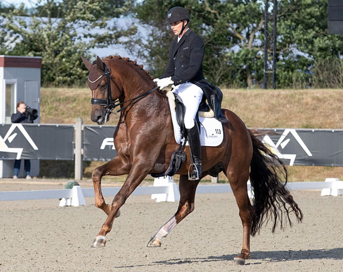 A similar strategy has been applied to double young horse World Champion D'Avie (by Don Juan de Hus x Londonderry). There was no time wasting at small tour level and the 8-year old went straight from developing PSG to full Grand Prix. At his competition premier at the highest level, the gorgeous chestnut scored 70.100% to place 5th, with marks going from 67.300 (Jan Olson) to 73.300 (Hartig).