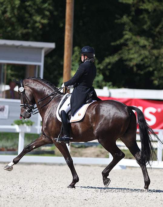 When the mind bogglingly low 70.529% flashed on the board, jaws dropped. A rider coming from a nation that is not Germany, Holland or Denmark needs to ride twice as hard to earn points. A 73% + score would have been the only logical mark for this fantastic test! Maybe the Belgian flag needs to swap its red and yellow colour - accidentally - to see if that would bring justice to the judging.