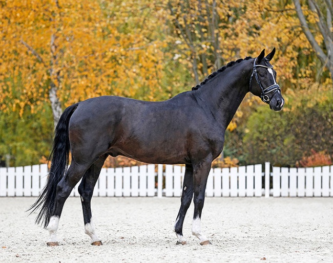 One horse that certainly draws the attention is the 5-year old Oldenburg stallion Lamour De Niro. This pitch black stallion is sired by San Amour, the second most successful Sandro Hit licensed son alongside Sir Donnerhall. San Amour has produced over 50 licensed sons as well as acclaimed international Grand Prix horses FBW Sunfire (2020 European U25 Champion) and Santiano R (Sönke Rothenberger). Dam Sire De Niro needs no introduction as one of the greatest Grand Prix horse producers ever. Lamour De Niro has only just begun his career, but his fantastic looks and quality predestine him for a bright future.