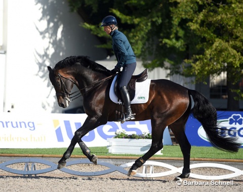 German Olympian Dorothee Schneider made her long awaited come back on Gabriele Kippert's 16-year old Hanoverian Showtime (by Sandro Hit x Rotspon), who has now been since in public since the 2021 Tokyo Olympics almost a year ago. The pair returned with a bang, receiving top scores from the all-German judges panel.