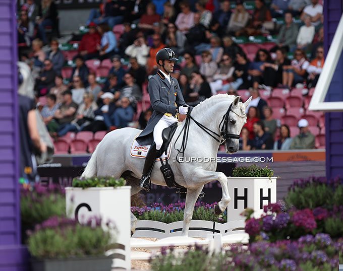 It must be said that Spanish team debutants Alejandro Sanchez del Barco and Quincallo de Indalo particularly got spirited acclamation for their exceptional ride. The grey PRE stallion just warmed everyone's hearts with his obedient, soft and easy going presentation of all the Grand Prix moves. Especially the one tempi changes were touching. The horse was steady and elastic in the contact and his tall rider Alejandro, who is trained by Isidro Maldonado, did a wonderful job presenting the new number one for Spanish dressage.