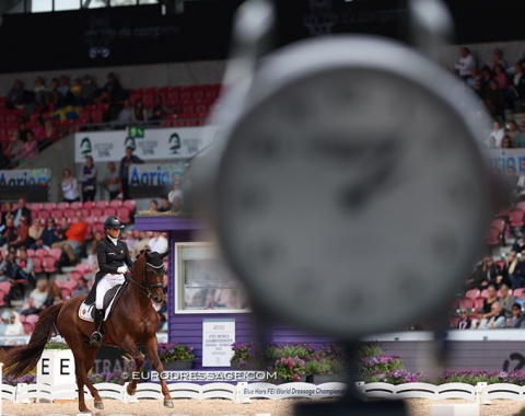 Lottie and Gert-Jan van Olst's 11-year old KWPN stallion Glamourdale (by Lord Leatherdale x Negro) showed in the Grand Prix that they were ready and in shape for the ultimate achievement, the World Champion's title, and they were breathing down Dufour's neck with their second-place finish. In the Special they overtook the Danish pair by tiding up a few of the issues that were still there in the Grand Prix. The trot extensions were massive, the passage work was active and regular, the half passes ground covering and so beautifully cadenced. The extended walk was hurried though and there was a small pause in the rhythm in the first piaffe, while in the second piaffe he got wide in front and did not display the desired/required self carriage and lowering of the haunches.