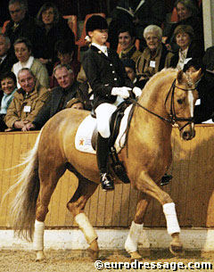In her first year on Domino, Sanneke gained experience at national shows and finished 8th at the German Pony Championships in Steinfeld. Their CDI starts were in Freudenberg and Beek that year and in 2005 they rode their first international abroad in Travagliato, Italy. Konrad was Sanneke's better scoring pony and was the one she got selected with on the German team for the European Championships but Sanneke kept Domino ticking at shows until 2007. They were fifth at the 2007 Preis der Besten.