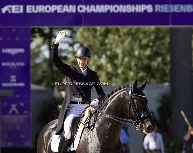 | Reaching the Final of the European Championship in Riesenbeck with my wife's horse, Zonik Hit, that we trained since he was a youngster. |