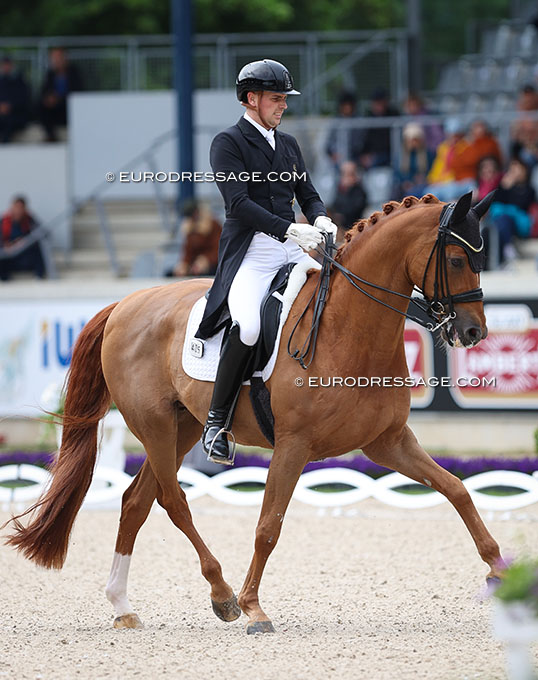 Two years ago Sönke Rothenberger and the Danish warmblood Kjaerholms Fendi (by Franklin x Diamond) were the rising starts in Germany and caused a sensation by scoring in the high seventies in their first year at Grand Prix. Unfortunately, the pair has not been able to reproduce an ease and effortless that was prevalent in 2022 in the coming years. It's hard to describe but it looks like there is some insecurity between the two and it often leads to mistakes in the test.