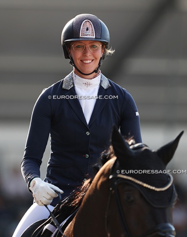 "This is my first time here in Ermelo. The scene, the people, it's overwhelming," she said "On the first day Glam gave me such a secure feeling, it was such a nice test. Today he was a bit afraid with so many spectators. It's never totally simple with stallions. Glam is a showman, a macho. He's a big mover. It's easy for him. He always gives 3000% under saddle. Today in the arena he was scared. He never went into such a big arena, and I never rode in such a big one."