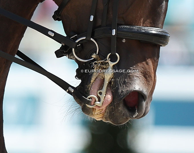 There is no need for these role models to re-invent themselves in their way of training. Why should they put more emphasis on basic gymnastics, suppleness, self carriage and collection if the exceptional quality of the ground gaits of their horses in combination with an extravagant expression of the Grand Prix tricks are rewarded by the judges. It's a vicious circle. Of course they strive to improve their horses, but loosening the noseband or releasing the curb rein do not appear in their manual. It is the crutch they lean on for more control."