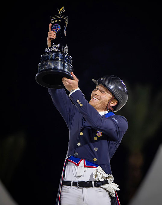 Ben Ebeling (USA) and Bellena claimed the inaugural US Equestrian Dressage Open Final at the 2025 CDI Thermal, hoisting the impressive trophy to conclude the first year of the finals across the three Olympic disciplines.