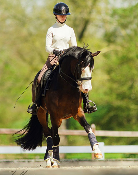 Qualified for the Bundeschampionat for the young Dressage Pony test as a four year old, coming 5th in the young eventing ponies at the Bundeschampionat as a 5 year old, and also qualifying as a dressage pony with winning the qualifier with exceptionally high marks. He then again qualified for the six year old dressage ponies together with a just 11 year old girl.