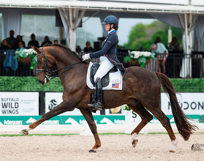 Davis placed fourth individually with her 68.544% ride on Scott Durkin’s 13-year-old Toronto Lightfoot, adding to a career-defining season for the duo. She attributes much of the Totilas gelding’s ability to focus in a big atmosphere to having cows as well as a children’s trampoline right next to her ring at home in Loxahatchee, Fla.