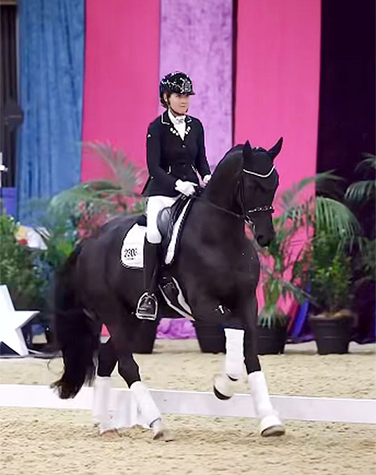 Jessica Dertell and the imported KWPN stallion Osaka P (by Escolar x Florencio) led the field in the preliminary round with 75.804% and scored 76.157% to win the finals. Bred by Pegasus Stables in The Netherlands, the developing Prix St Georges Osaka got 7.4 for walk, 8.3 for trot, 8 for canter, 7.7 for submission and 8.4 for perspective. His technical score was 72.714%.