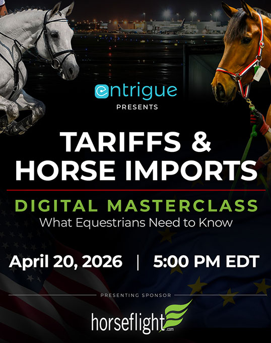 Entrigue Inc. is reinforcing its commitment to elevating business intelligence within the equestrian industry through the launch of a new masterclass series focused on U.S. tariffs, import costs, and financial strategy. Horseflight joins the initiative as presenting partner, supporting a shared vision of greater transparency and sophistication in international horse trade and travel.