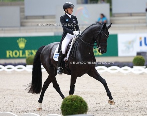 Last minute advice from Fanti’s trainer Max to Ivana while the horse is calmly waiting and watching the hustle bustle of the warm-up ring.