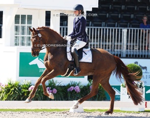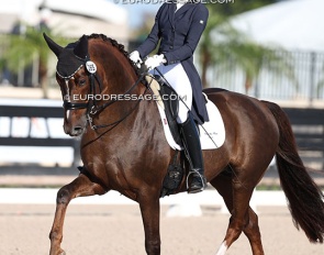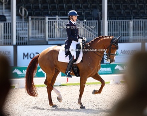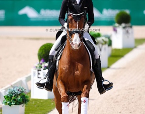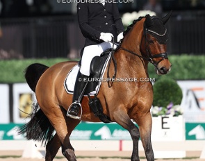 Dutch Lisette Doodhagen on the Westfalian Bonita JB (by Bernay x Dream of Heidelberg). The horse does not have ground covering gaits, but boy could she piaffe and passage.
