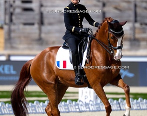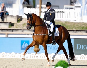 Paula Matute Guimon on Navaltocon. Their team debut was not so successful as the PRE was unlevel on the centerline and in the half passes. They were excused from the test