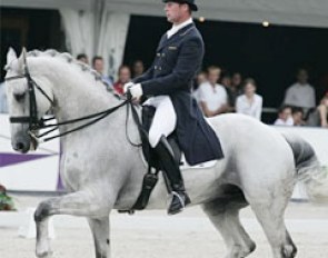 Swiss Anne Rita Bertschy rode her Tenson to one of the nicest musical compositions in this class. It all sounded very much like a re-edited version of Anky's Dance of Devotion kur (by Soerjadi) but it fitted Tenson well