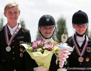 Charlott Maria Schurmann won the Junior Riders Team Test at the 2010 CDI Wiesbaden. She rode the prize giving ceremony on her second horse Burlington (by Breitling)