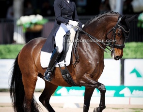Dutch Lisette Doodhagen on the Westfalian Bonita JB (by Bernay x Dream of Heidelberg). The horse does not have ground covering gaits, but boy could she piaffe and passage.